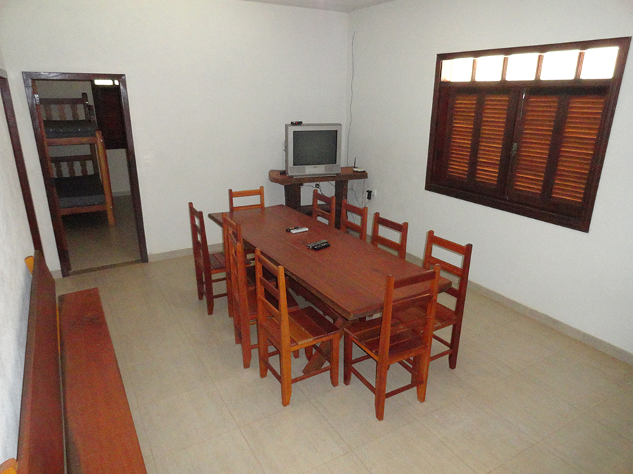 Temos capacidade para receber 300 pessoas. 5 quartos com 30 camas, sendo uma suite, estacionamento para 100 veículos. Com 300 metros quadrados de área coberta, rede WIFI, com sauna, 6 banheiros, sendo um para deficiente físico, churrasqueira, piscina adulto e infantil.